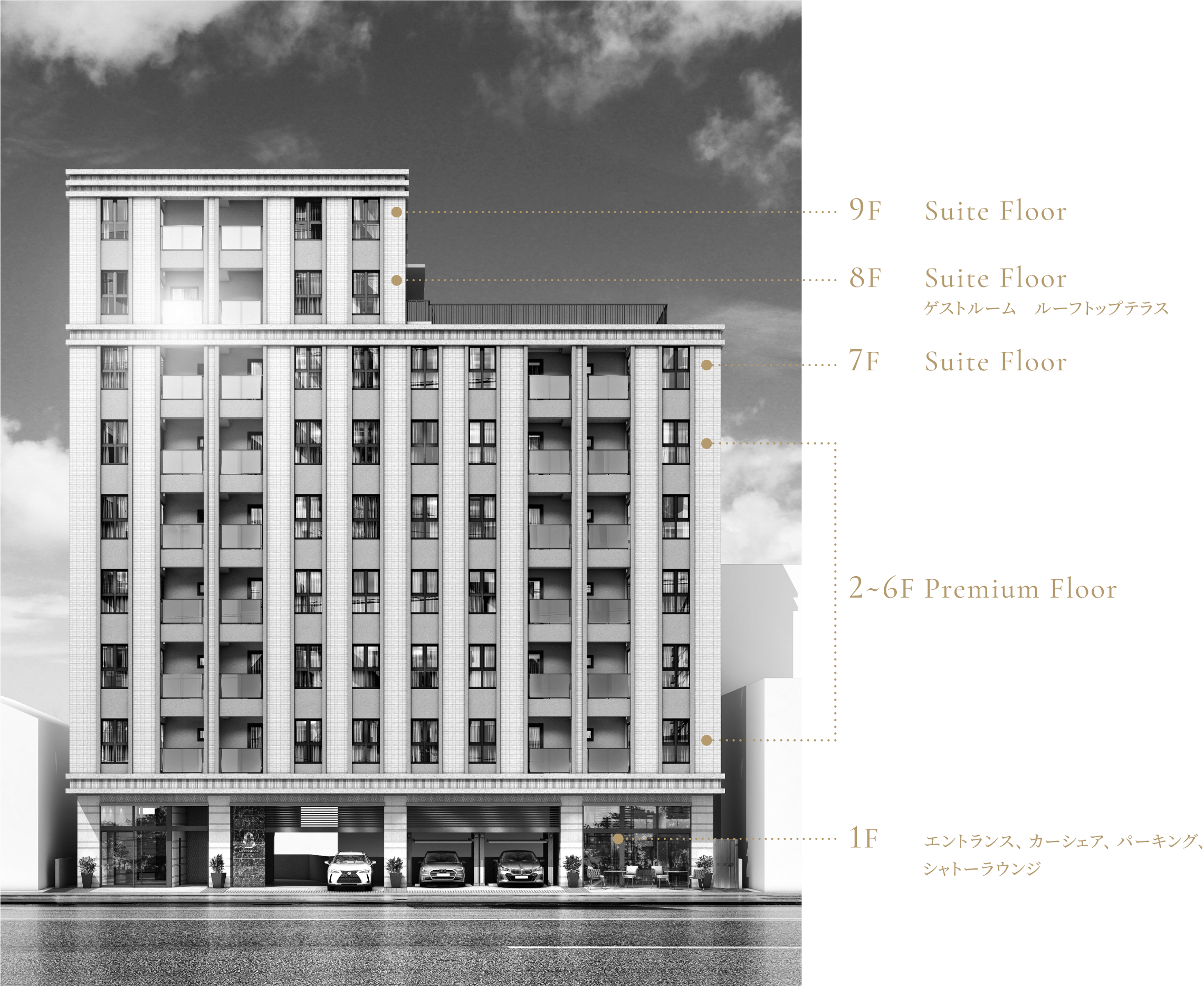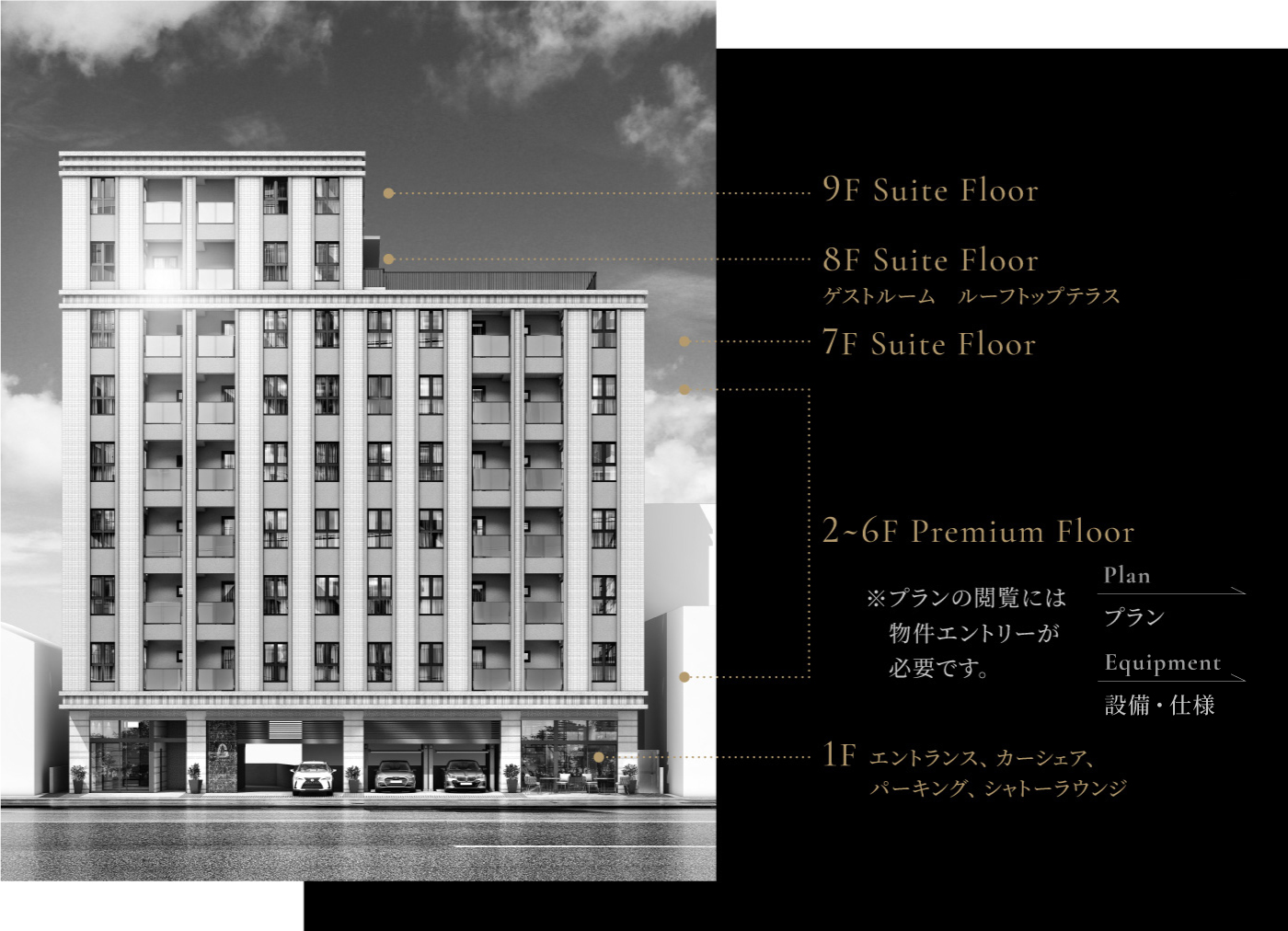 地上9階建、1LDKを中心とした